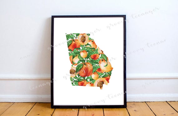 Georgia Peach Home Decor Sign State Outline Poster Instant Download Printable Apartment Kitchen Southern Fruit Leaves Themed Decoration